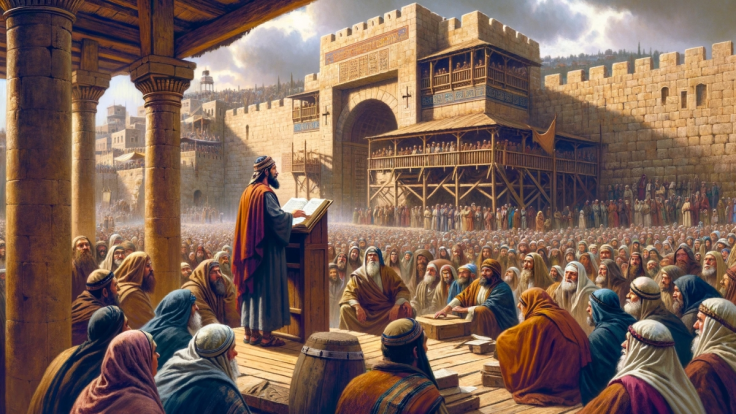 题图:以斯拉向以色列人诵读律法书 本周二,川普总统将在椭圆形…